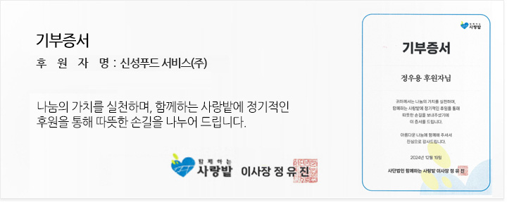 신성푸드는 기업의 사회적 책임을 다하기 위해 사회공헌활동을 통해 따뜻한 사회를 만들어 가고 있습니다.